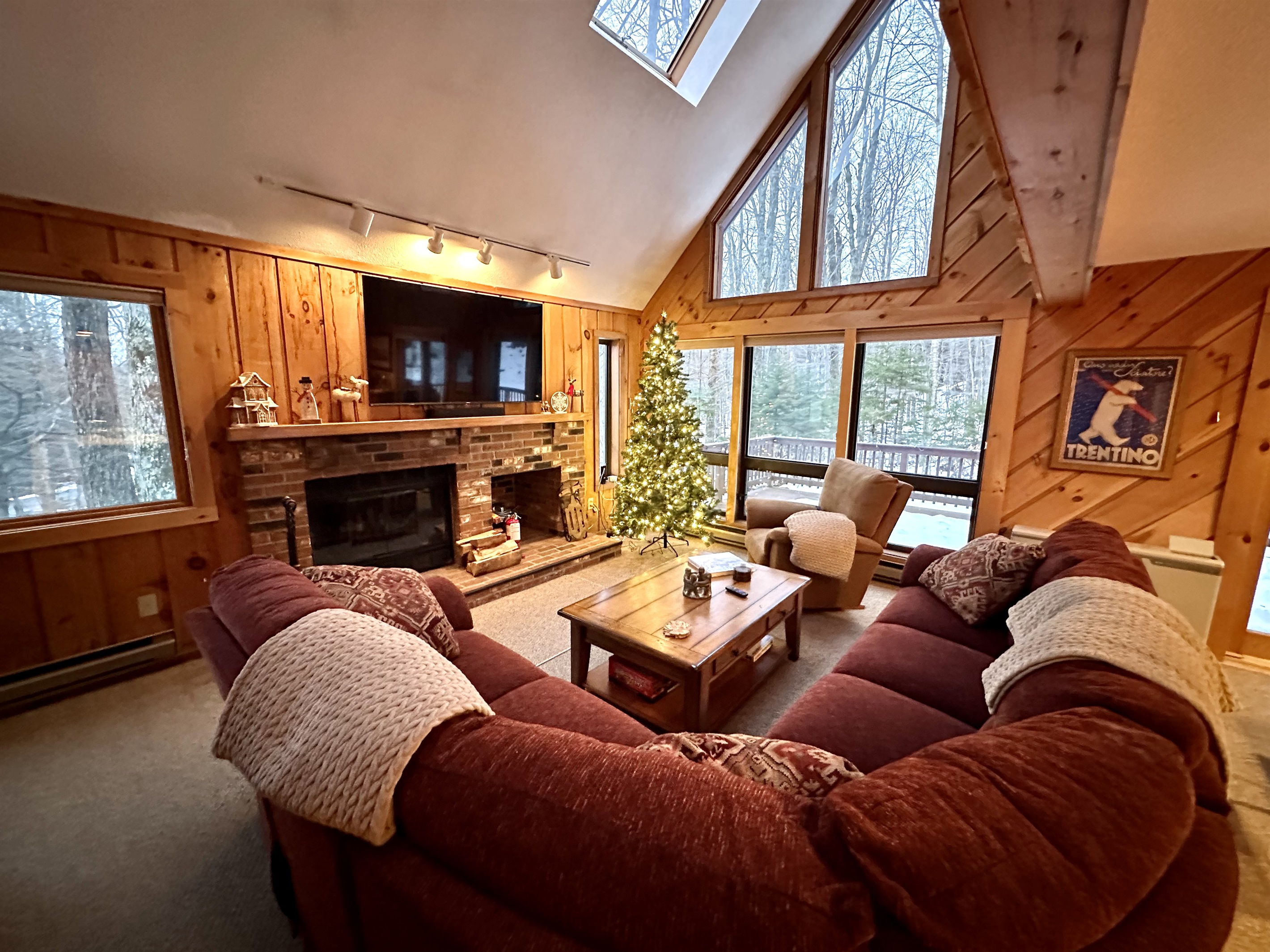 Southern Vermont at its bestNestled in the woods of the Bears Crossing Community, this rustic 3050 square foot 6 bedroom, 3 bathroom three level chalet has two living areas and two outdoor decks to enjoy the views of the surrounding woods & ridge line. Hop on the free Moover Shuttle on weekends from the edge of our driveway to take you to Mt Snow. At the end of a day of skiing, ski back home to the Bears Den Chalet using the Bears Crossing ski home trail. The house comes with full linens, a full kitchen setup with everything you need to prepare meals, two smart TV's (check out our collection of 80s ski movies!), and an Alexa controlled SONOS speaker setup to play music during your stay. The driveway fits four cars, and we've installed a level two EV charger for guests to use at no cost. As our guest, you'll also have access to the Community Center where you'll find ping pong, a pool table, a small gym, tennis court, and a heated outdoor pool (summer only). Great for vacationing families in any season, come stay at the Bears Den Chalet! Read more on our About Us page! |